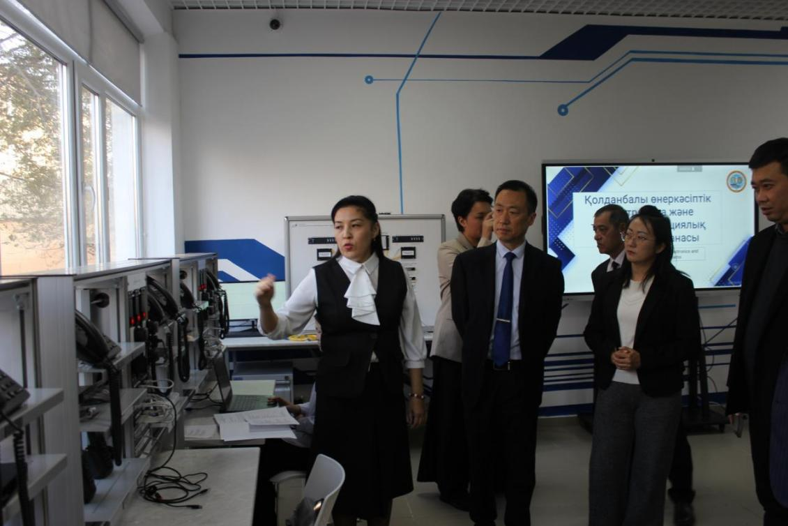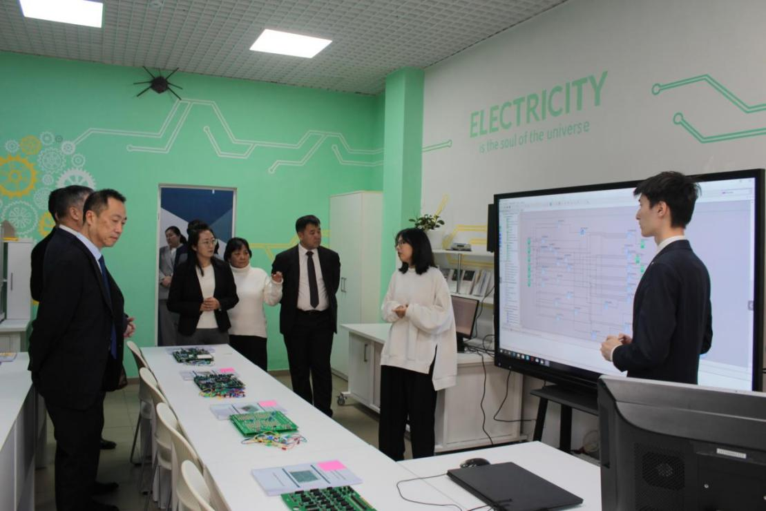 张克与卡佩佐夫·别尔里克·叶尔肯诺维奇为“中哈信息网络与技术学院”揭牌。合作学院将整合双方优势资源,聚焦电子网络与技术信息领域开展深入合作,培养具有国际视野和实践能力的高素质专业人才。随后,代表团一行参观了该校的专业实践教学基地,并就后期学生外出留学实习进行商讨。